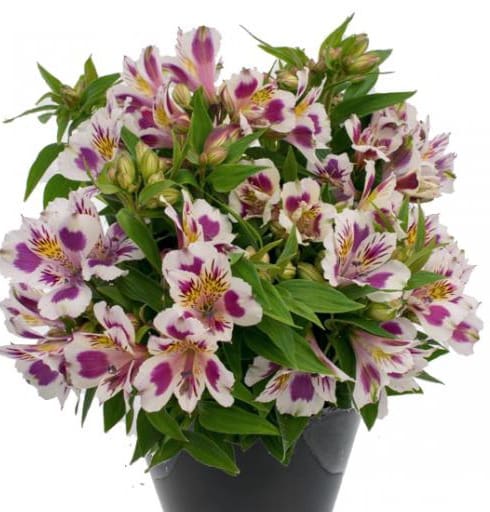 Notes: This tropical-looking, compact cutie loves to show off its tufts of narrow, emerald leaves and velvety, white flowers with purple splotches. Produces loads of flowers over long periods with very little maintenance.