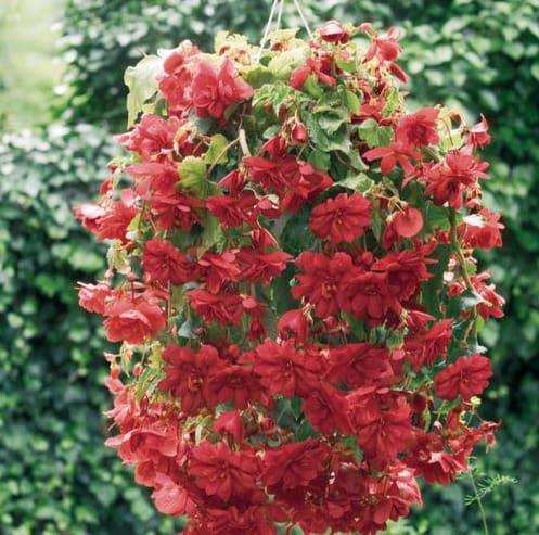 Notes: Big, pendent, salmon/coral blossoms on a bushy, cascading plant with deep green foliage perfect for hanging baskets. Large cascading double flowers all summer long.