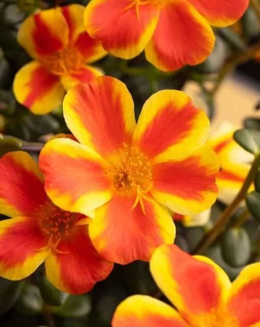 Notes: Large, single tropical bright orange and yellow striped flowers and attractive, succulent-like foliage. Heat and drought tolerant. Attracts butterflies and hummingbirds
