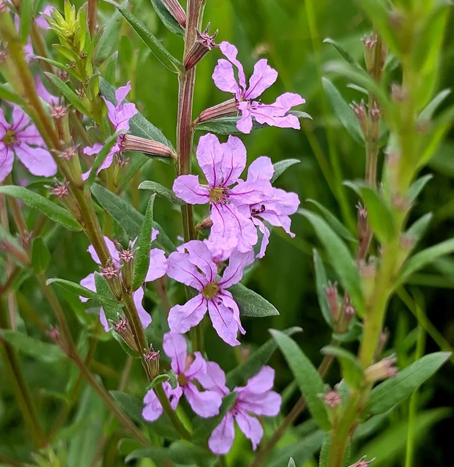Notes: Winged Lythrum has pale purple flowers with a darker purple mid-vein with the soft texture of tissue paper. Grows naturally in wet areas on the side of ponds and streams and wet prairies, meadows, fens and marshes. Has suffered in the wild because it's difficult to distinguish from invasive Purple Loosestrife.
