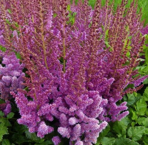 Notes: Dwarf astilbe with sweetly scented, upright raspberry red sturdy plumes. Excellent plant. Very dense, lacy foliage. Cut. Groundcover.