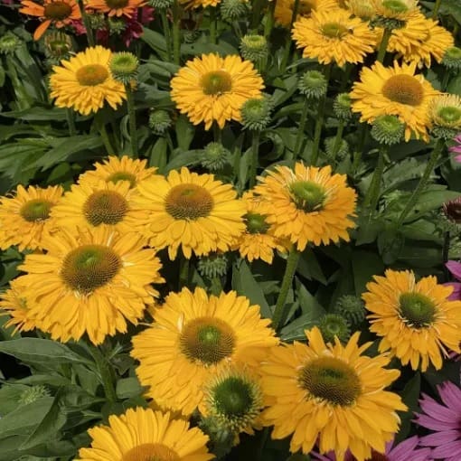 Notes: Layers of yellow petals with fringy edges encircle orange cones. Very floriferous with compact growth habit. Extremely attractive to pollinators and excellent for cutting.
