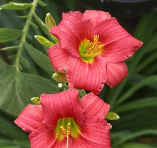 Notes: Midseason bloom. 3" bright raspberry-red flowers with lime-green throats. Excellent vigor; semi-evergreen; reblooms. Versatile plant for the landscape. Grass-like foliage. Multiple awards.