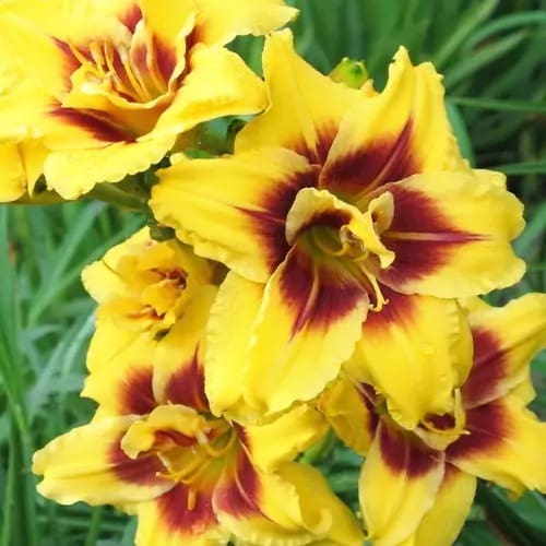 Notes: A compact-growing daylily with bright yellow double flowers featuring a red eye zone. Ideal for vibrant garden displays.