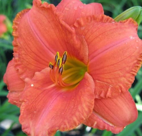 Notes: Uniquely colored flowers are coral-tangerine with a reddish-coral band and yellow throat. Smooth, rounded peals have beautifully ruffled edges. Vigorous grower with healthy foliage and tons of buds. Nocturnal. Fragrant. Extended bloom. Rebloom. Tetraploid