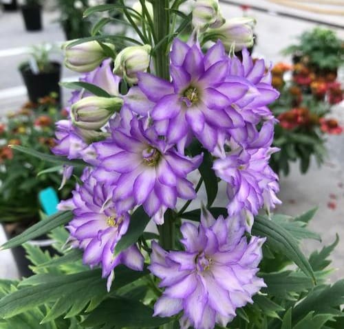 Notes: Bred for stronger stems, a multi-branching habit, and improved hardiness and heat tolerance. This genetically compact and bushy series will quickly and easily fill a 2 gallon container and produces abundant semi-double lavender-purple spikes that rebloom throughout the summer.