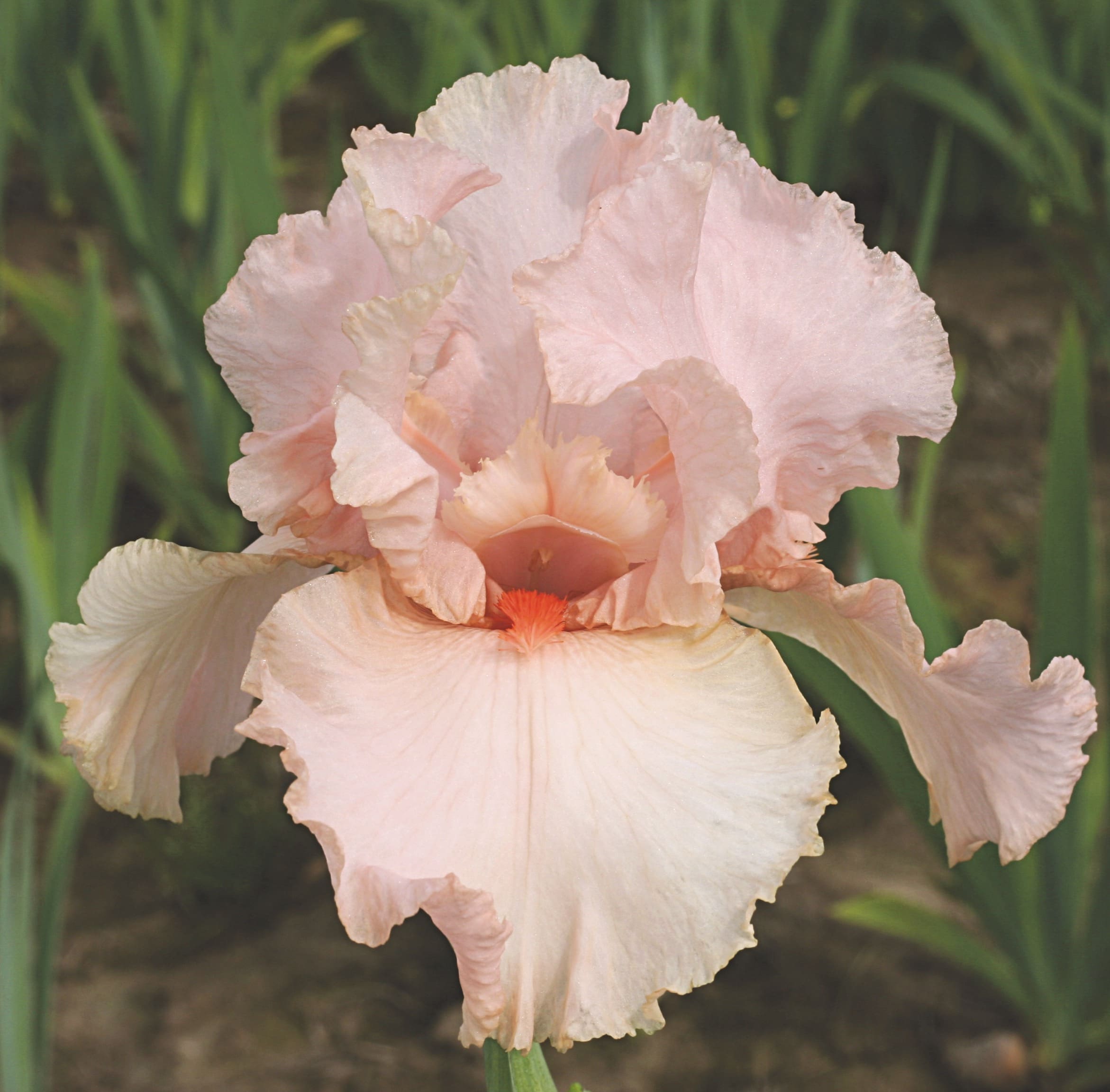 Notes: Early. Pink standards and falls with mandarin-red beards. Rebloomer. Slight fragrance. Deer resistant. 36 inches tall. Zone 3-9.