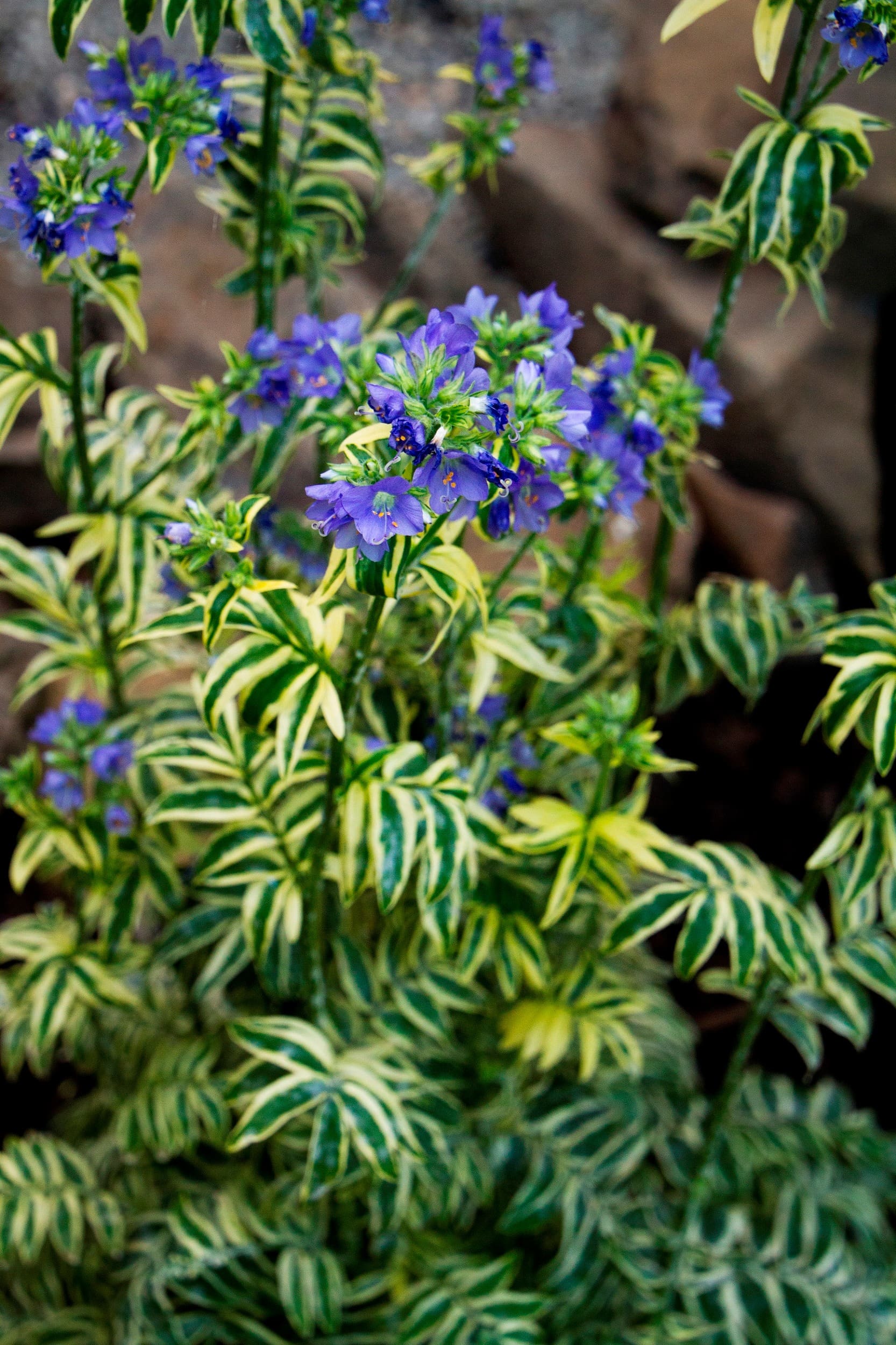 Notes: Beautiful cream and green variegated foliage all season. Violet-blue flowers from late spring to early summer. Prefers rich, consistently moist soil. Deer resistant.