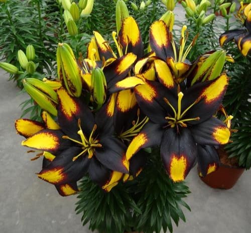 Notes: Stunning bicolor of black-yellow flowers with great bud presentation, 3-6 flowers per stem.
