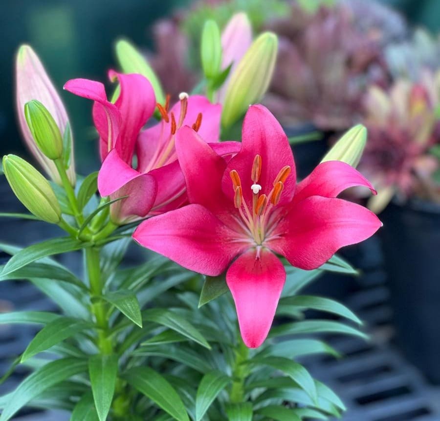 Notes: A standout for its large, funnel-shaped pink flowers, fullness, and glossy, dark colored foliage. 4-6 flowers per stem.