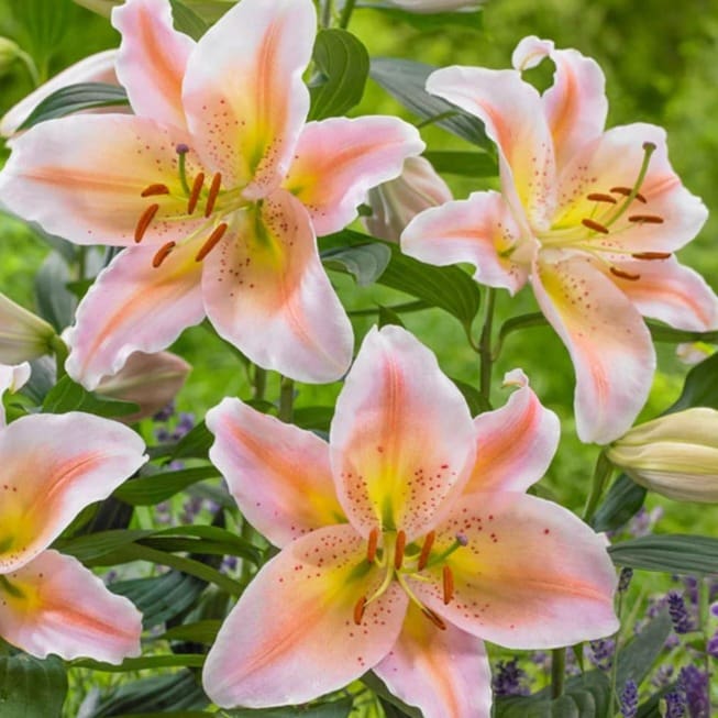 Notes: Compact growing variety. Peach-salmon flowers with dark orange strip and white edges, yellow green center.