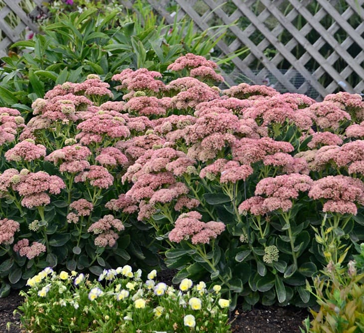 Notes: Large rosy-salmon flower heads tinged bronze from early fall to frost. A favorite of bees and butterflies. Flowers September-October. Good cut. Drought tolerant.