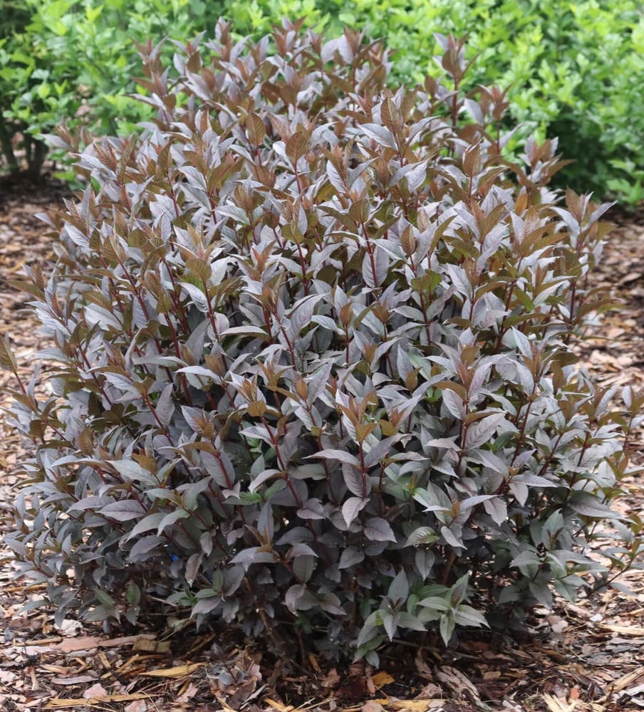 Notes: The world’s first diervilla with striking, jet-black foliage that stays bold and dramatic all season long. Unlike traditional varieties that tend to fade with the summer heat, this incredible shrub maintains its deep, velvety black leaves from spring to fall, creating an eye-catching contrast against its bright yellow summer blooms.