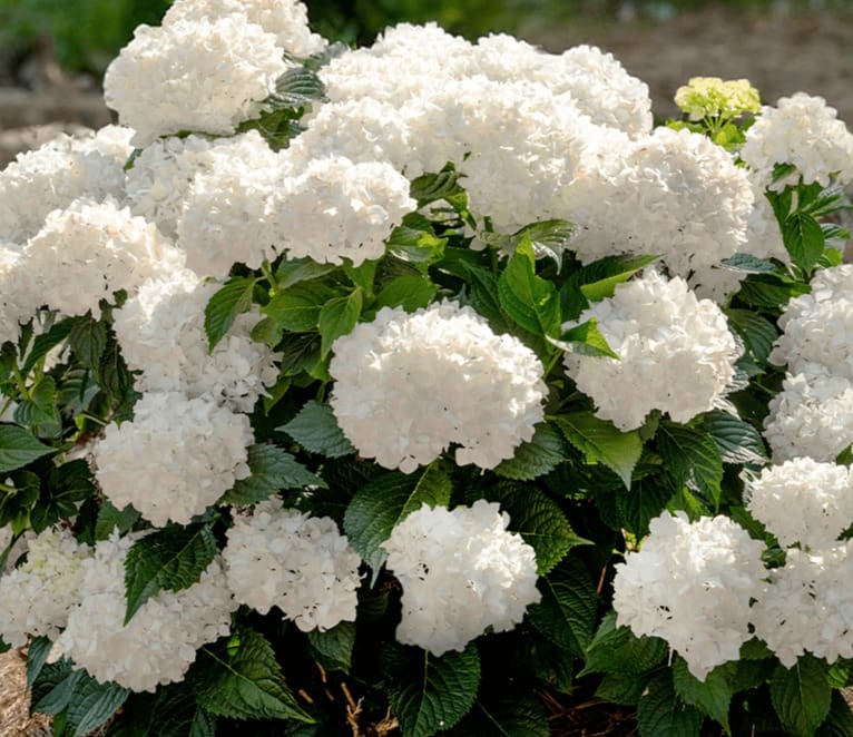 Notes: Brings effortless, classic beauty to the garden with bright white blooms that cover the plant all season long. Rebloomer. The white blooms are slower to fade than other varieties and will age to deep pink in certain climates.